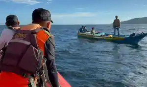 Proses pencarian sempat terkendala oleh cuaca buruk dan gelombang tinggi.